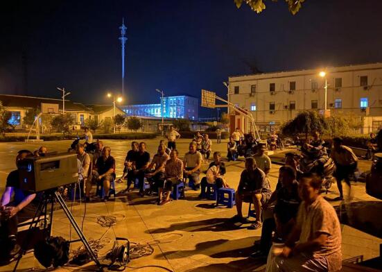 為了讓更多的村民了解此次觀影活動,新時代文明實踐志愿者們提前做好宣傳動員。當(dāng)天傍晚,志愿者們在村內(nèi)的法治廣場上支起了大銀幕和投影儀,將設(shè)備仔細(xì)調(diào)整完畢,又?jǐn)[放了一些凳子,提前做好活動的準(zhǔn)備,等待村民的到來。