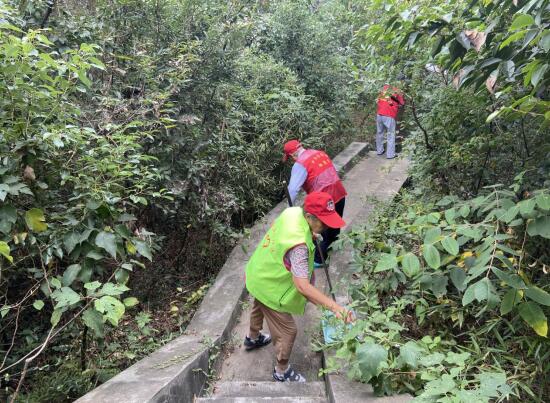 當(dāng)天,老黨員們拿著不同的工具來(lái)到了后山步道,互相分配路段和任務(wù),對(duì)久久無(wú)人打掃的步道進(jìn)行清理。有的老黨員拿著掃帚清掃地面上的落葉,也有的拿著夾子,將步道邊植被處的垃圾撿拾起來(lái),大家分工合作,將整條休閑步道打掃得干干凈凈。入黨幾十年的趙大爺說(shuō):“這個(gè)步道是群眾們經(jīng)常來(lái)的地方,我們把它打掃干凈了,大家看著也舒服嘛!”