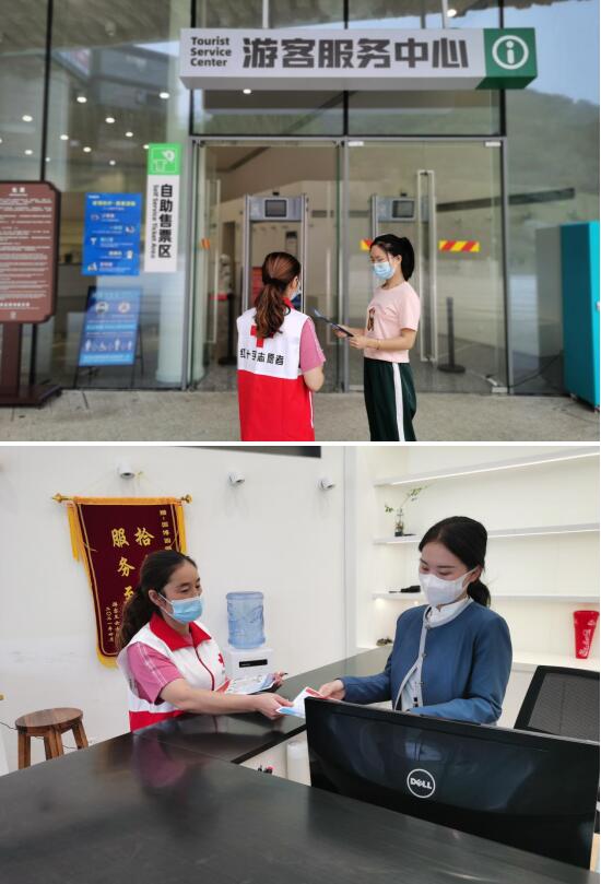 為了提高自己的救護技能,更好地為群眾服務(wù),活動前期,湖山村紅十字會的志愿者們進行了統(tǒng)一的培訓(xùn)上崗,建立了救護支援隊,在周邊景區(qū)積極巡查,參與救護志愿活動。景區(qū)救護站也持續(xù)開放,并由專業(yè)醫(yī)護人員值班,以防景區(qū)內(nèi)游客突發(fā)意外和疾病,可以及時提供幫助。