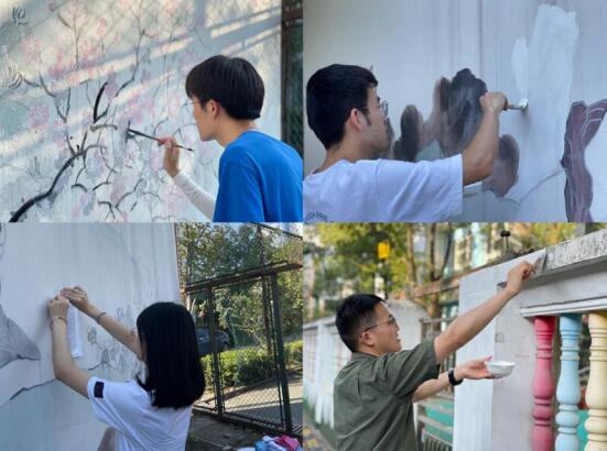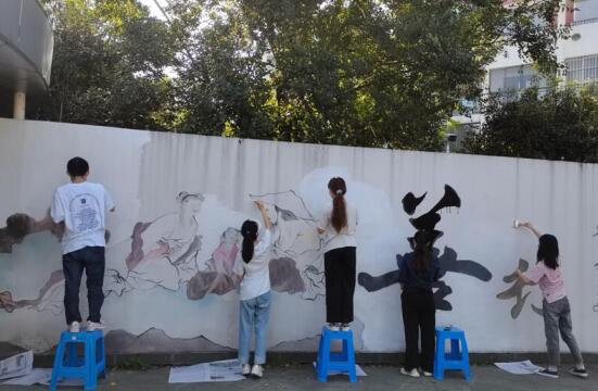 在本次活動(dòng)中,來(lái)自南京理工大學(xué)公共事務(wù)學(xué)院的學(xué)生們作為墻繪的主力軍,將“農(nóng)村美起來(lái)”和“綠水青山”作為活動(dòng)的主題,以社區(qū)白墻為畫板,繪出美好鄉(xiāng)村生活。在創(chuàng)作過(guò)程中,團(tuán)隊(duì)成員分工明確,清理場(chǎng)地、勾勒底稿、墻體上色,迅速進(jìn)入工作狀態(tài)。在大家的共同努力下,一幅幅生動(dòng)的圖畫躍然墻上。此外,團(tuán)隊(duì)成員還對(duì)社區(qū)內(nèi)的幼兒園外墻進(jìn)行了粉刷,孩子們積極參與,從如何調(diào)色到怎樣繪制,再到如何保護(hù)社會(huì)環(huán)境,大學(xué)生們一步一步向孩子們傳授著墻繪的技巧。