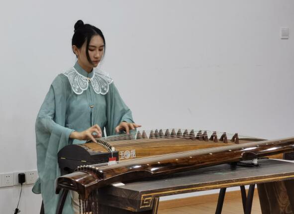 當(dāng)天,包括老黨員、退伍軍人在內(nèi)的轄區(qū)老年人來到了社區(qū)的社會(huì)化治理服務(wù)中心,在工作人員的指引下落座。上午九點(diǎn),子啊芮齡藝術(shù)空間負(fù)責(zé)人兼任活動(dòng)的主持人的主持下,活動(dòng)拉開帷幕?!蛾P(guān)山月》、《秋江夜泊》、《半壺紗》、《長(zhǎng)門怨》等曲目那悅耳的琴聲在表演者的精彩演繹下從指尖流淌而出,古琴、古箏、鋼琴,東西方不同的樂器在這里完美交融,在場(chǎng)的老年人不禁沉醉這美妙的樂聲中。當(dāng)《青城山下白素貞》這首熟悉的曲調(diào)響起時(shí),有的老年人甚至跟著輕輕哼唱起來,整場(chǎng)活動(dòng)現(xiàn)場(chǎng)氛圍十分融洽。