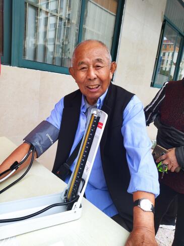 專業(yè)醫(yī)生逐一為老人們測(cè)量血壓和血糖,同時(shí)根據(jù)老人的測(cè)量結(jié)果,對(duì)其血壓狀況做出初步的評(píng)估以及專業(yè)的健康指導(dǎo)。測(cè)量中發(fā)現(xiàn)血壓高、血糖高的老人,醫(yī)生會(huì)關(guān)照老年人注意飲食,關(guān)注自己的身體反應(yīng)。在場(chǎng)的志愿者還會(huì)向老人普及一些疫情信息和防護(hù)知識(shí)。