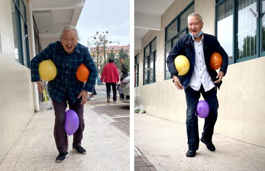 企鵝漫步的環(huán)節(jié)需要將兩個(gè)氣球夾在腋下,走到指定位置再返回,期間氣球不能落地、不能擊破。這個(gè)具有挑戰(zhàn)性的內(nèi)容,對(duì)于老人們來(lái)說(shuō)也是小菜一碟,在歡聲笑語(yǔ)中,將氣球運(yùn)送了回來(lái)。