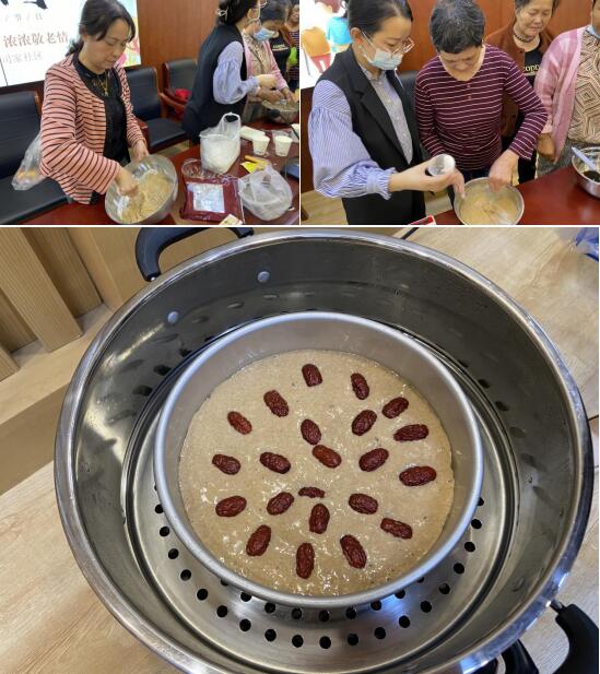 現(xiàn)場,志愿者卞老師還為大家介紹重陽節(jié)及重陽糕的有關(guān)知識,并手把手教大家制作重陽糕。參加活動的居民在卞老師的指導(dǎo)下,個個都興趣盎然,很快就上手制作起來。制作結(jié)束,居民們紛紛表示:“重陽節(jié)大家聚在一起參加活動,教授我們制作重陽糕,是一件很有意義的事情,回去之后自己動手做給孩子吃!”