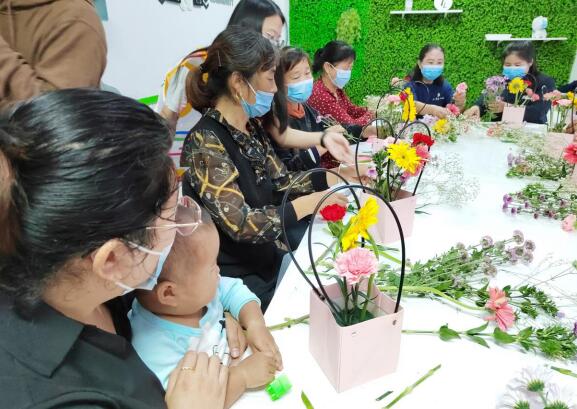 首先,社區(qū)邀請龍尚村的數(shù)十位長者在尚趣樓開展了一場別開生面的重陽節(jié)插花活動,志愿者向老人們講解了插花的基本知識,包括插花技巧、花的種類、顏色搭配和養(yǎng)護方法等,讓長輩們初步認識了一些基本花材和插花器具,并現(xiàn)場演示制作。老人們在志愿者的引導下,按照各自的喜好,修剪、層次搭配、點綴修整,把一朵朵不同品種、不同色彩的鮮花匯聚成一個個美麗的花籃,并相互交流插花的心得,彼此欣賞各自的花藝作品,度過一個愉快又充實的上午。