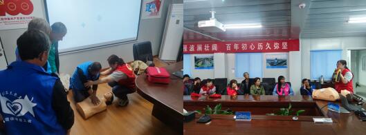 活動中,侯老師首先介紹了急救的重要性與及時(shí)性,如何第一時(shí)間判斷傷者的生命體征以及如何進(jìn)行及時(shí)有效的現(xiàn)場急救,最大程度地挽救傷者的生命。隨后對急救基礎(chǔ)知識、心肺復(fù)蘇、AED(自動體外除顫儀)的使用、氣道梗阻的四項(xiàng)技術(shù)進(jìn)行了詳細(xì)講解。在實(shí)操練習(xí)階段,侯老師親身示范演示,讓學(xué)員們更直觀的了解心肺復(fù)蘇、海姆立刻急救法的操作方式。參加培訓(xùn)人員在授課醫(yī)生的指導(dǎo)下,進(jìn)行實(shí)操測試,經(jīng)過反復(fù)練習(xí),大家熟練掌握了心肺復(fù)蘇、三角巾包扎的急救技法,也深深體會到醫(yī)護(hù)人員的不易,認(rèn)識到了正確急救的重要性。