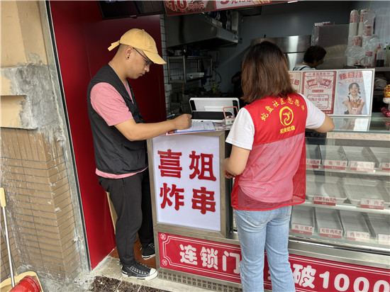 志愿者配合檢查轄區(qū)餐飲店、汽修店,督促新開的餐飲店家做好油煙凈化器清洗工作,保持臺(tái)賬記錄;幫助清理路面上環(huán)衛(wèi)工作者未及時(shí)處理的垃圾;利用除膠劑將長(zhǎng)期貼在墻面上難以完全揭下的廣告紙一一鏟除。