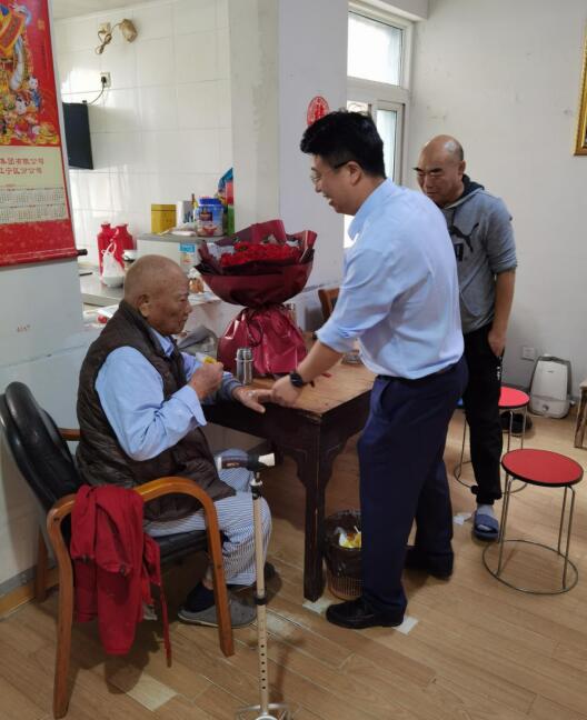社區(qū)慰問小組首先來到百歲老人的家中,黨委書記與老人親切握手,與他交談起來,詢問他的身體狀況,關(guān)心他的日常起居。隨后,書記送上了慰問金,代表社區(qū)向老人表達了祝福,愿他幸福健康,享受清閑安逸的晚年生活。