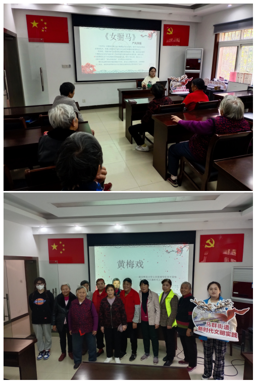 活動(dòng)中,青年志愿者圍繞“黃梅戲”主題,深入淺出地為老人們講解了黃梅戲的起源和藝術(shù)特點(diǎn),并現(xiàn)場(chǎng)唱上幾句,讓老人們體驗(yàn)了黃梅戲的獨(dú)特魅力與神韻,激發(fā)了老人們對(duì)黃梅戲的興趣。并選取黃梅戲經(jīng)典劇目《女駙馬》為老人們進(jìn)行了劇情介紹和影視賞析?,F(xiàn)場(chǎng),觀影氛圍濃厚,一些老人還小聲跟唱著。