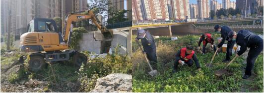 限期整改到期后,11日上午,燕子磯街道城管、下廟社區(qū)、城市治理志愿者配合部隊(duì)開(kāi)展集中整治行動(dòng)。早上八點(diǎn),現(xiàn)場(chǎng)共集結(jié)60余人,由于種菜面積廣,部隊(duì)還調(diào)用了2臺(tái)挖掘機(jī)。經(jīng)過(guò)3個(gè)多小時(shí)的努力,現(xiàn)場(chǎng)共鏟除菜地5000余平方米,拆除違規(guī)建設(shè)4處。