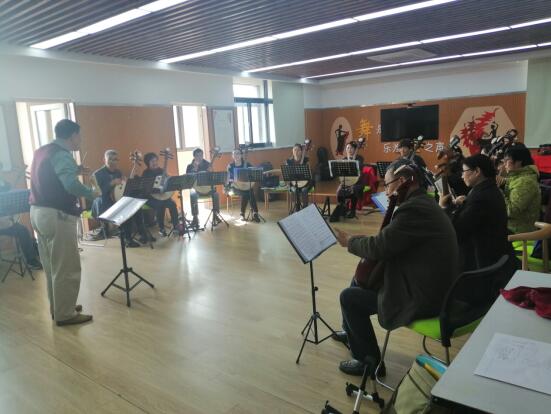 活動(dòng)中,“紅色經(jīng)典”民族器樂(lè)俱樂(lè)部的任老師給老人們?cè)敿?xì)介紹了各種拉弦樂(lè)器、彈弦樂(lè)器等民族樂(lè)器,并彈奏了相關(guān)的曲目給他們聽(tīng),老人們聽(tīng)得仔細(xì),表現(xiàn)非常積極。聽(tīng)完講解后,老人們?cè)诶蠋煹闹笇?dǎo)下進(jìn)行了簡(jiǎn)單的中阮彈弦樂(lè)器的演奏練習(xí)。老人們興致勃勃、姿勢(shì)十足,大家相互合作,在練習(xí)的過(guò)程中享受著音樂(lè)的樂(lè)趣。