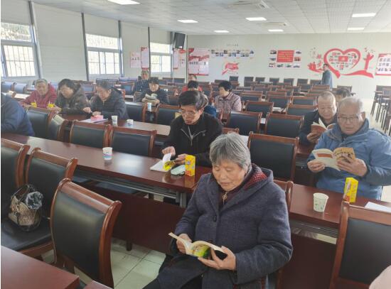 活動中,老黨員和中老年閱讀愛好者們一起閱讀《不生病的智慧》、《家庭飲食營養(yǎng)300問》等健康養(yǎng)生方面的書籍,大家邊讀書邊互動交流,圍繞養(yǎng)成日常生活飲食中良好習慣、怎樣正確服用藥物和如何預(yù)防高血壓等內(nèi)容進行討論,紛紛就如何健康養(yǎng)生發(fā)表自己的看法、分享保健心得、互相傳授好經(jīng)驗,在各種不同觀點的碰撞交融中,進一步澄清了許多養(yǎng)生誤區(qū),現(xiàn)場氣氛輕松活躍,營造了濃厚的讀書學習氛圍。村老黨員郭老還從自身的事例出發(fā),和大家分享了自己科學養(yǎng)生的方法,表示將永葆黨員本色,踐行紅色服務(wù)為群眾。