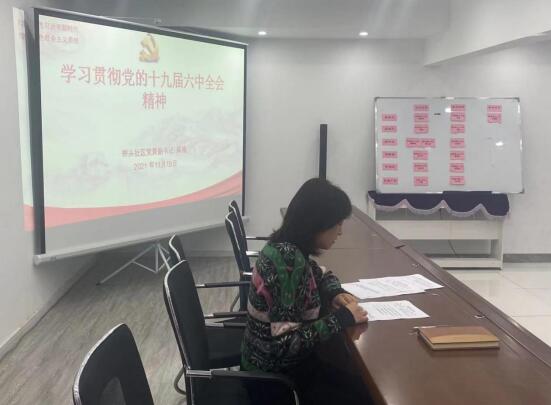 為深入學(xué)習(xí)貫徹黨的十九屆六中全會(huì)精神,引導(dǎo)廣大黨員干部群眾把思想和行動(dòng)統(tǒng)一到全會(huì)精神來(lái),11月18日,江寧區(qū)淳化街道橋頭社區(qū)開(kāi)展學(xué)習(xí)貫徹黨的十九屆六中全會(huì)精神專題學(xué)習(xí)會(huì),社區(qū)黨委副書記薛梅主持會(huì)議。