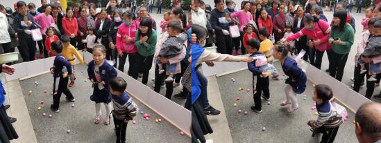 此次趣味運(yùn)動(dòng)會(huì)活動(dòng)共分為3個(gè)環(huán)節(jié),首先是小朋友們的個(gè)人比賽:運(yùn)送乒乓球。小朋友們要把乒乓球從起點(diǎn)運(yùn)到前方家長手中的杯子里,中途球不能落地,在規(guī)定時(shí)間內(nèi)誰運(yùn)送的越多就能獲勝。這項(xiàng)游戲看似簡單,但小朋友們?cè)谕娴倪^程中出現(xiàn)了很多問題,整個(gè)比賽的過程十分有趣。家長們?cè)谝慌詾楹⒆觽兗佑痛驓?,孩子們也慢慢掌握了技巧,最終在限制時(shí)間內(nèi)所有小朋友都取得了不錯(cuò)的成績。接下來的兩個(gè)項(xiàng)目都是團(tuán)體賽,由父母帶著孩子一起比拼。第二個(gè)項(xiàng)目是套圈,家長和孩子每人有5次機(jī)會(huì),套中的東西越遠(yuǎn),得分越高,最后計(jì)算總成績進(jìn)行排名。這個(gè)項(xiàng)目是小朋友最喜歡的項(xiàng)目,每個(gè)人都躍躍欲試。小朋友們也在家長的指導(dǎo)下順利完成了比賽。最后一個(gè)項(xiàng)目是搖搖晃晃,需要家長和小朋友一起通過蹦跳把綁在身上的盒子里的乒乓球全部搖出盒子,比賽最終以時(shí)間來決定成績。在家長和小朋友的配合下,順利結(jié)束了游戲。最終,我們以三輪比賽的總成績?yōu)樗袇①惖募彝ミM(jìn)行排名。