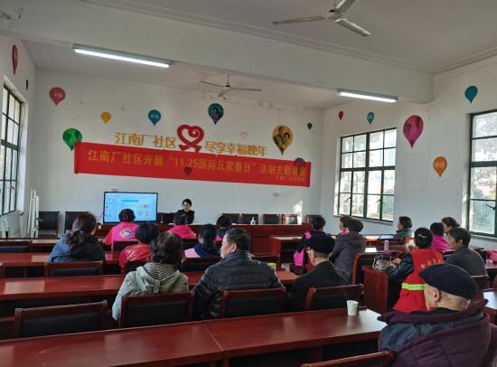 11月25日是聯(lián)合國確立的“國際消除針對(duì)婦女暴力日”,又被稱為“國際反家暴日”,當(dāng)天,棲霞區(qū)棲霞街道江南廠社區(qū)婦聯(lián)組織開展法制主題講座,以家庭平安推進(jìn)文明社區(qū)建設(shè)。