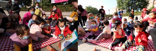 在活動中,社區(qū)巾幗志愿者為0-3歲的孩子們分享幼兒故事書,帶著孩子們閱讀,書籍中彩色的圖案以及精彩的故事吸引著孩子們的興趣。隨后,志愿者們教孩子們動動手指,用手?jǐn)[出小狐貍的造型,充分調(diào)動自己的創(chuàng)造力以及手指的靈活性?;顒咏Y(jié)合孩子們愛玩的天性,讓孩子在玩中學(xué)、做中學(xué),引導(dǎo)孩子在快樂的氛圍中學(xué)習(xí)知識,實現(xiàn)個性化教育。