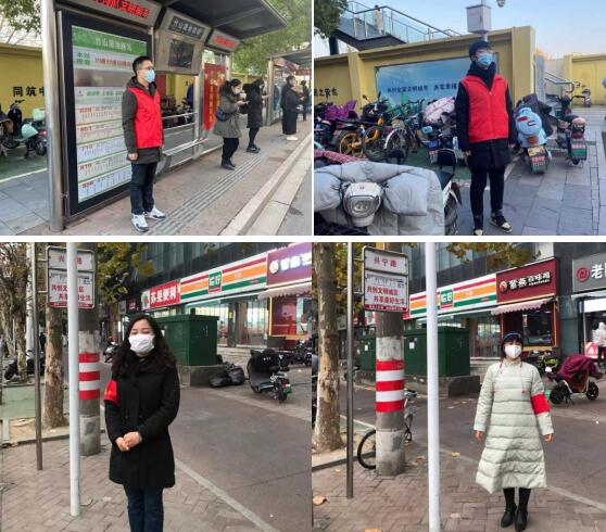 寒冷冬日,網(wǎng)格員和平安志愿者閔珠、魏先風(fēng)、陳龍不畏嚴(yán)寒,筆直地站在公交站臺(tái)、地鐵站口等重要位置站崗值守,守護(hù)每一位居民的出行安全。志愿者表示:“維護(hù)轄區(qū)治安,守護(hù)國家公祭日的安穩(wěn)是我們志愿者義不容辭的責(zé)任。”在站崗值守過程中,志愿者和網(wǎng)格員收到了來自社區(qū)居民的稱贊與感恩。“今天很冷,但是志愿者沒有說苦沒有說累,一直堅(jiān)持站崗,守護(hù)著我們。”