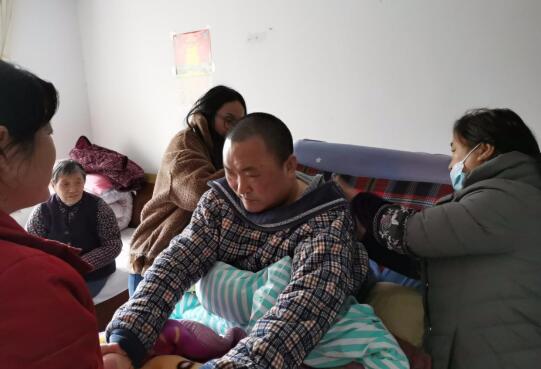 殘疾人因?yàn)楦鞣N因素與社會(huì)接觸較少,當(dāng)看到社工一行人走進(jìn)家中,他們的臉上都會(huì)露出燦爛的笑容。與殘疾人坐在一起,社工拉起了他們的手,在聊天過程中,社工了解他們最近的生活狀況并及時(shí)給予回應(yīng),讓殘疾人感受到了溫暖。賈叔是一個(gè)癱瘓?jiān)诖?年多的殘疾人,走進(jìn)他家時(shí),她妻子正在給其做按摩,社工見狀立刻上前去,在其妻子的指導(dǎo)下,給賈叔輕輕地捶肩拍背,讓其妻子有了短暫的休息時(shí)刻,賈叔也用笑容以示感謝。
