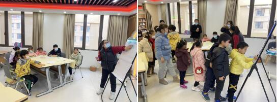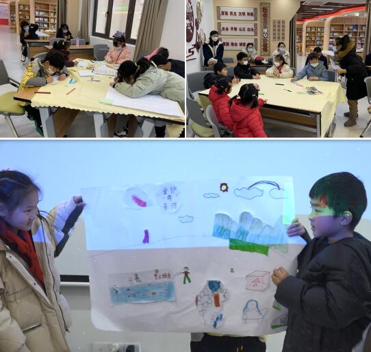 “作為南京的母親河,秦淮河是南京市最大的地區(qū)性河流,由東而西橫貫主城,被稱為‘中國第一歷史文化名河’,孕育了古老的金陵城和文明。”志愿者引導(dǎo)孩子們坐在桌邊,向他們介紹了本次活動的內(nèi)容和意義,讓他們意識到愛水護河的重要性。隨后,志愿者給孩子們發(fā)了簽字筆和便利貼,請他們?yōu)橹驹戈犉痍犆?、想口號,并投票選出最合適的那一個。起名完成后,志愿者邀請孩子們用彩色鉛筆、馬克筆畫出太陽、白云、草叢、樹木和運動、散步的小人等等,把它們用剪刀剪下來,和志愿者一起粘貼成想象中的“綠水青山”,形成一幅巨大的粘貼畫。