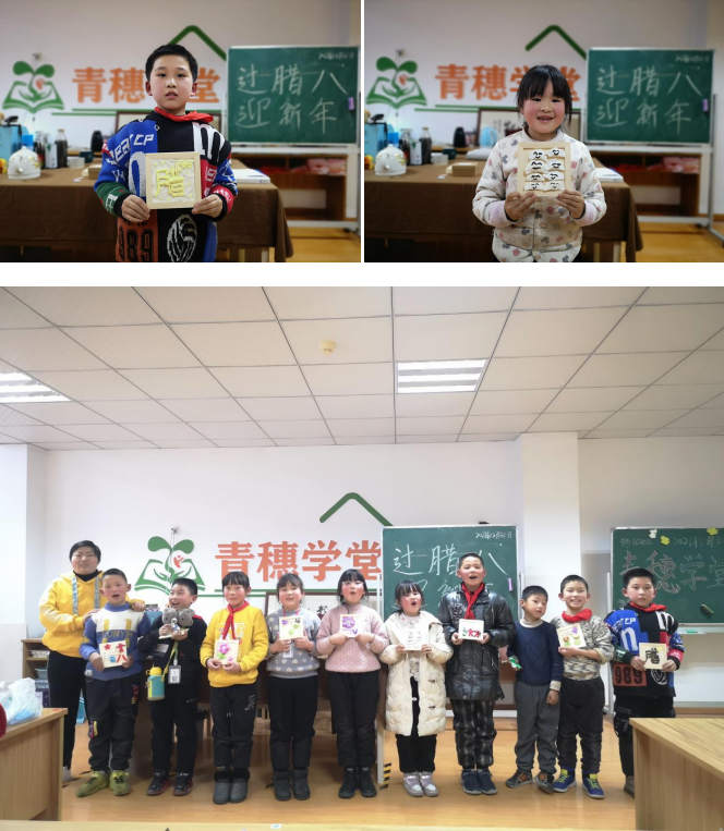 俗語(yǔ)說(shuō):“過(guò)了臘八就是年”,臘八節(jié)的到來(lái)預(yù)示著新年的臨近,青穗學(xué)堂為同學(xué)們準(zhǔn)備了極受歡迎的主題活動(dòng)——黏土描繪春節(jié)?;顒?dòng)中,同學(xué)們興奮異常,紛紛發(fā)動(dòng)巧思,搓泥、塑形、拼色忙得不亦樂(lè)乎,他們手握黏土,瞬間搖身變?yōu)槟芄で山常瑢⒓冋娴母星槿谌胫赡鄣淖髌分?。在同學(xué)們的相互介紹與歡聲笑語(yǔ)中,活動(dòng)逐漸進(jìn)入了尾聲,他們有的拼出“臘”字,有的捏出春節(jié)美食餃子,更有出彩者竟捏出了年畫小人。