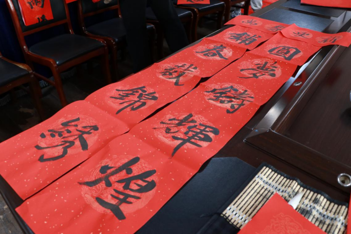 活動現(xiàn)場,8位來自橫溪街道本地的書法家神情專注,揮毫潑墨,“事事如意大吉祥,家家順心永安康”、“迎新春江山錦繡,辭舊歲事泰輝煌”……短短兩小時,房間內(nèi)就填滿了近百幅春聯(lián)。一幅幅喜氣吉祥、墨香四溢的春聯(lián)和福字飽含著老書法家們對橫溪社區(qū)居民的美好祝愿,整個社區(qū)都洋溢著新春的喜氣景象。