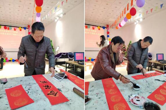 在君子殘疾人之家,書法老師們潑墨揮毫,大顯身手,行草隸楷,寫下一幅幅彰顯書法文化神韻,寓意吉祥如意的春聯(lián)送給殘障、孤寡老人,表達了書法家們對殘障、孤寡老人的新年祝福和關懷之情。