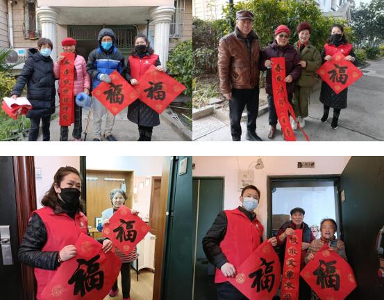 待作品風(fēng)干,身穿鮮艷紅馬甲的志愿者把“福”字和“天地福順家添財(cái),平安如意人福多”“春日祥和幸福年,彩燈高照平安門”等各式各樣的春聯(lián)送到社區(qū)困難群體的手上。殘疾人劉師傅看著來自鄰居們的祝福,喜笑顏開,不住地贊嘆:“年年都掛社區(qū)的春聯(lián),正想著,今年的就到了。”居民王奶奶,向鏡頭展示送給她的“福”字,對(duì)志愿者說:“小伙子,麻煩幫我掛上吧,這字紅彤彤的,看著心里暖。”