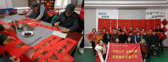 在小區(qū)活動(dòng)中心的會(huì)議桌前,老年大學(xué)學(xué)員濕潤(rùn)毛筆,研磨墨汁,一切準(zhǔn)備就緒便揮毫潑墨,將對(duì)社區(qū)居民的祝福全部融入一筆一劃中,紅彤彤的春聯(lián)讓年味瞬間多了起來。老人告訴志愿者:“年輕的時(shí)候我就有寫書法的愛好,如今退了休,能夠繼續(xù)這項(xiàng)愛好,還有機(jī)會(huì)把自己的作品與他人分享,感到很幸運(yùn)。”