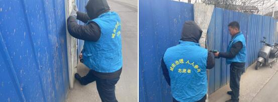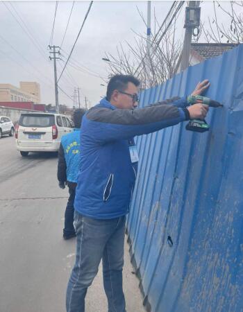 社區(qū)接到電話后第一時(shí)間就安排城市治理公眾委員召集志愿者,帶著工具前往現(xiàn)場(chǎng),核查部分圍擋出現(xiàn)的被風(fēng)吹倒、傾斜、人為破損等實(shí)際問(wèn)題,志愿者們紛紛認(rèn)定這會(huì)給出行的車輛和行人帶來(lái)安全隱患。于是,針對(duì)圍擋存在的問(wèn)題,志愿者們立即明確分工,相互配合,利用鐵絲、手電鉆、老虎鉗等工具對(duì)破損圍擋進(jìn)行修補(bǔ)、加固。搓著被凍得通紅的雙手,志愿者樂(lè)呵呵的說(shuō):“加固牢,消除安全隱患,過(guò)個(gè)平安年。”