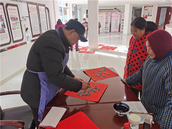 一個(gè)上午,書(shū)法家們手中的如椽之筆幾乎沒(méi)停歇,義務(wù)為居民書(shū)寫(xiě)對(duì)聯(lián)和“福”字200余幅。