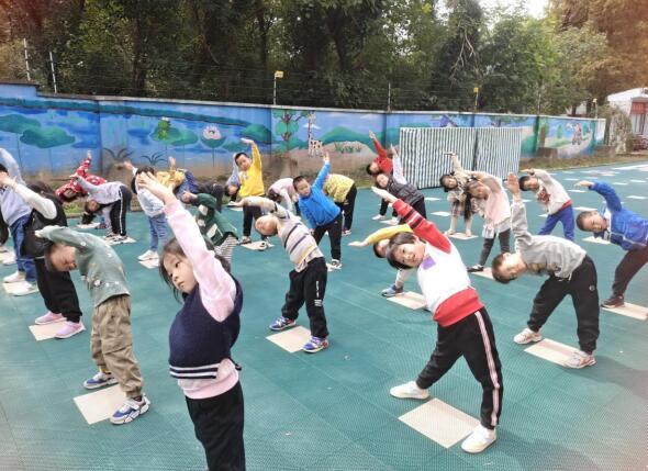 操場上,孩子們在社區(qū)工作人員和老師的指引下排列成陣,伴隨著陣陣音樂聲,跟著老師的動作,時而伸展運動,時而擴胸運動,時而踢踢腿、蹦蹦跳跳,通過練習(xí)體操熱身,進(jìn)行全面的體育訓(xùn)練,在快樂運動的同時,促進(jìn)感覺與動作的組織協(xié)調(diào)能力。做完體操后,孩子們還在操場上展開了其他的運動和游戲項目,包括用坐位體前屈鍛煉身體的靈敏性和柔韌度;用慢跑發(fā)展和增強肌肉群,鍛煉耐力……孩子們在運動的過程中汲取正能量,茁壯成長。