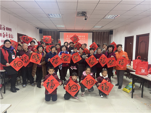 1月25日,南京市棲霞區(qū)馬群街道果場社區(qū)依托新時代文明實(shí)踐站,組織社區(qū)果彩志愿服務(wù)8支隊伍的志愿者在社區(qū)三樓活動室開展了“新年送春聯(lián) 納福入社區(qū)”暨果彩志愿隊伍聯(lián)歡會活動,提前將春節(jié)的祥和氣氛洋溢在社區(qū)大家庭里,并對本年度表現(xiàn)優(yōu)異的志愿者進(jìn)行了表彰。