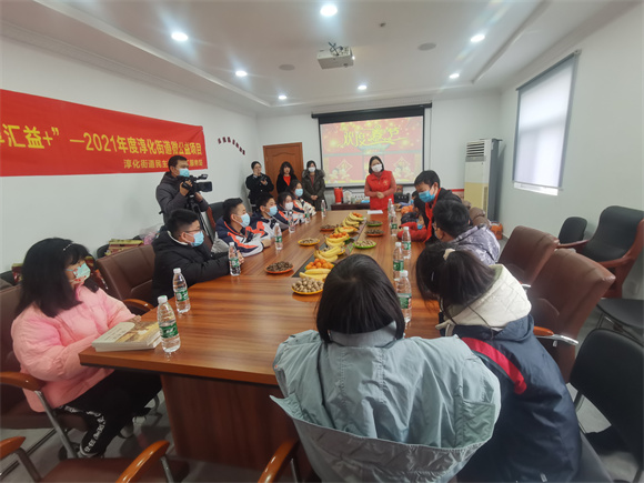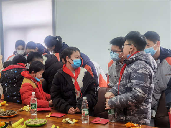 “爆竹聲聲辭舊歲,紅梅點點迎新春”。活動現(xiàn)場,工作人員通過茶話會座談的方式,讓來自南京外國語學校初一四班的7名學生和民主部分困境兒童進行結(jié)對。