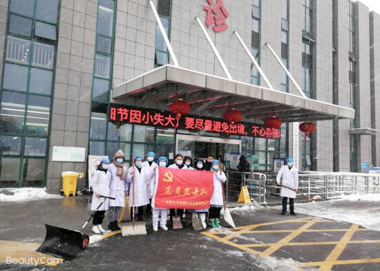 雪情就是命令,支部黨員志愿者們不畏嚴(yán)寒,對(duì)醫(yī)院院區(qū)及社區(qū)街道路上的積雪和結(jié)冰進(jìn)行清除,齊心協(xié)力,配合默契,鏟的鏟、推的推、掃的掃,干得熱火朝天,忙碌的身影構(gòu)成了冬日里一道亮麗的風(fēng)景線。雖然戶外溫度已到-3℃,但大家勞動(dòng)的熱情和團(tuán)結(jié)的力量讓這個(gè)冬日變得格外溫暖。