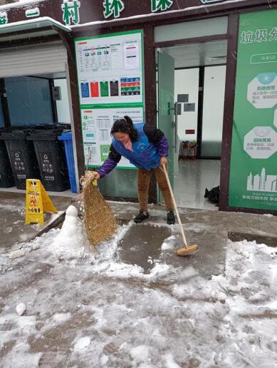 當(dāng)雪花飄落在金陵城,飄落在新年開工第一天上班人的路上,南京市棲霞區(qū)棲霞街道江南廠社區(qū)的垃圾分類指導(dǎo)員也“見雪而動(dòng)”,紛紛清掃門前積雪、鋪設(shè)草甸,保證居民前來(lái)投放垃圾時(shí)的安全。