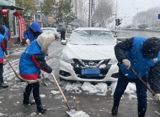 街道城市治理公眾委員劉石城表示,根據(jù)天氣預報,志愿者們提前做好組織部署工作,準備好了融雪鹽、鐵鍬、掃帚等鏟雪除冰用品,迎接降雪的到來。在街道城市治理公眾委員的帶領(lǐng)下,志愿者沖鋒在前,大家不畏嚴寒,揮舞著掃帚、鐵鍬,齊心協(xié)力,默契配合,鏟的鏟,推的推,忙碌的身影構(gòu)成一道亮麗的風景線。城市治理志愿者們還為小區(qū)出入口放置了防滑草墊,提醒居民雪天注意居家和出行安全。