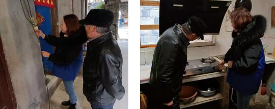 兩個(gè)小時(shí)很快過去了,張爺爺?shù)奈葑右脖淮驋叩母筛蓛魞?。此外,網(wǎng)格員徐教姣此刻也化身為消防志愿者,為張爺爺家檢查電線線路、安裝插座、更換保險(xiǎn)絲、測(cè)試電壓。同時(shí)為張爺爺詳細(xì)講解了平日使用煤氣罐的注意事項(xiàng),從燃?xì)庠畹氖褂梅椒ǖ阶R(shí)別液化氣瓶是否有異常,以及日常油鍋起火的撲滅方法,都作了詳盡講解,張爺爺也點(diǎn)頭表示理解。最后網(wǎng)格員留了聯(lián)系電話,再次叮囑張爺爺雨雪天路滑,無必要,不出門。生活上需要幫助的話,一定要及時(shí)聯(lián)系我們,社區(qū)會(huì)為他們提供幫助。