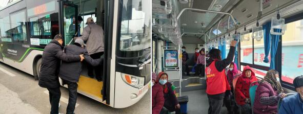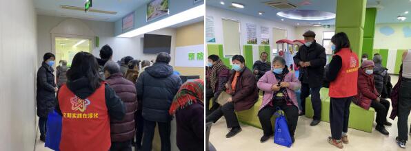 當天,志愿者引導(dǎo)老年人登上公交,前往土橋衛(wèi)生院。接種過程中,志愿者全程陪同,為他們登記信息、答疑解惑、留觀反應(yīng),時刻注意著他們的狀態(tài)和身體情況,并將老人們順利送回家中。