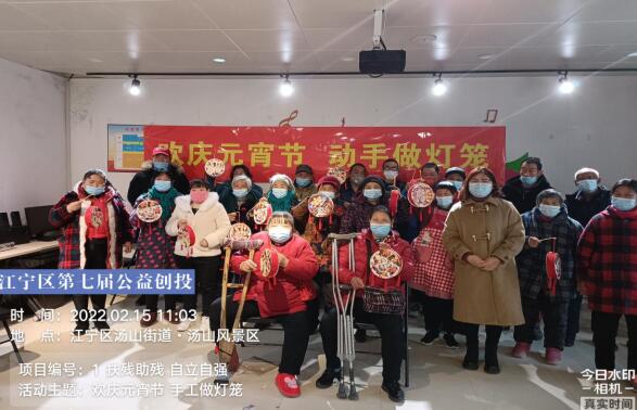 為了慶祝元宵節(jié),讓這個(gè)年過的更有年味,2月15日上午南京市江寧區(qū)湯山街道古泉?dú)埣踩酥液凸湃蛹茵B(yǎng)老聯(lián)合春天里殘疾人之家一起在古泉開展了“歡慶元宵節(jié) 手工做燈籠”為主題活動(dòng),讓大家真切的感受傳統(tǒng)節(jié)日的氛圍。