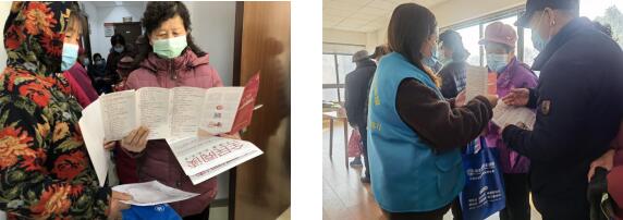 得知義診期間很多居民排隊(duì)時(shí)間都較長,社區(qū)組織志愿者為排隊(duì)候診的群眾講解老年疾病預(yù)防要點(diǎn)方法,介紹了解健康養(yǎng)生知識(shí)的途徑,除了圖文并茂的手冊閱讀能給大家生動(dòng)形象的科普,看手機(jī)、新聞、資訊、報(bào)紙等也能讓居民獲取健康信息,提高民眾健康素養(yǎng)。