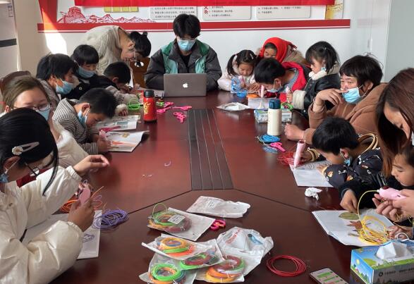 活動(dòng)伊始,志愿者向青少年們講解了3D打印技術(shù)的原理、作用和意義,并將事先準(zhǔn)備好的材料分發(fā)給大家,介紹了使用方法,引導(dǎo)孩子們充分發(fā)揮自己的想象力和動(dòng)手能力,將自己的所思所想“打印”出來(lái)。“這個(gè)線要怎么連起來(lái)呀?”“為什么我的樹葉總是畫不好?”現(xiàn)場(chǎng)熱火朝天,孩子們時(shí)不時(shí)提出自己的問題,志愿者們總是耐心解答。隨著時(shí)間的流逝,一件件成品誕生在大家的手上,孩子們的臉上洋溢著自豪的笑容,將作品向小伙伴、志愿者們展示分享。
