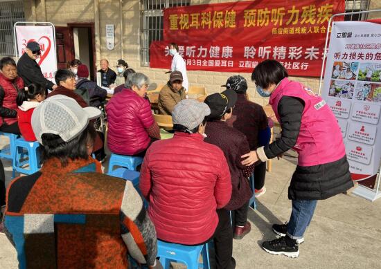 2022年3月3日,在第23個(gè)全國(guó)愛耳日來臨之際,南京市棲霞區(qū)棲霞街道五福家園殘疾人之家聯(lián)合南京立聰堂、社區(qū)紅十字、社區(qū)婦聯(lián)在五福家園社區(qū)居家養(yǎng)老服務(wù)站社前廣場(chǎng)共同開展“重視耳科保健 預(yù)防聽力殘疾”主題活動(dòng),旨在大力宣傳聽力殘疾預(yù)防的重要性與必要性,近50名社區(qū)居民參與此次活動(dòng)。