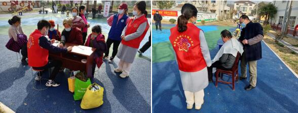 考慮到一些殘疾人、老年人出行不便,志愿者在廣場上設(shè)置了志愿服務(wù)點,為他們免費剪頭發(fā)、測血壓等,方便他們的生活,也讓他們了解自己的身體狀況,適當(dāng)鍛煉?;顒幼詈箝_展了健康知識問答,現(xiàn)場發(fā)放驚喜小禮品,調(diào)動村民答題的積極性,讓村民們在參與活動中了解更多的保健知識。