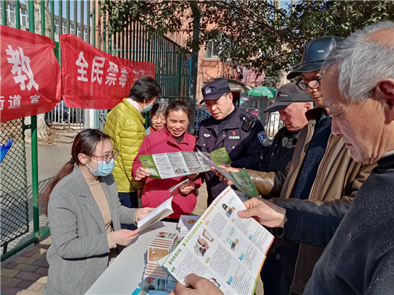 活動(dòng)現(xiàn)場(chǎng),張律師就高空拋物、財(cái)產(chǎn)糾紛、房屋漏水賠償?shù)葹榍皝碜稍兊木用褚灰唤獯稹蚧沙鏊ňW(wǎng)格員趙警官,向在場(chǎng)的居民發(fā)放防詐宣傳冊(cè)并告知居民謹(jǐn)防上當(dāng)受騙。網(wǎng)格長(zhǎng)、志愿者們則向居民現(xiàn)場(chǎng)講解禁毒、反邪、防詐等相關(guān)知識(shí)并發(fā)放法制宣傳冊(cè)及環(huán)保宣傳袋,以此提高居民群眾的防范意識(shí)、法制意識(shí)。