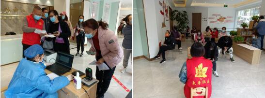 為了方便居民接種疫苗,社區(qū)提前邀請了醫(yī)護(hù)人員進(jìn)入社區(qū),向居民發(fā)送了相關(guān)通知,要求居民在做好疫情防控措施的前提下,帶好相關(guān)證件前來接種。當(dāng)天,志愿者在黨群服務(wù)站門口拉起了隔離帶和一米線,引導(dǎo)居民們排隊(duì)等候,并解答居民對于疫苗接種的疑問、陪同他們留觀反應(yīng),全程提供貼心、細(xì)心的服務(wù),獲得了居民的一致點(diǎn)贊。一名志愿者表示,自己肩負(fù)黨員和志愿者兩個(gè)身份,希望將“不忘初心”和“奉獻(xiàn)、友愛、互助、進(jìn)步”一起傳承、弘揚(yáng)下去。