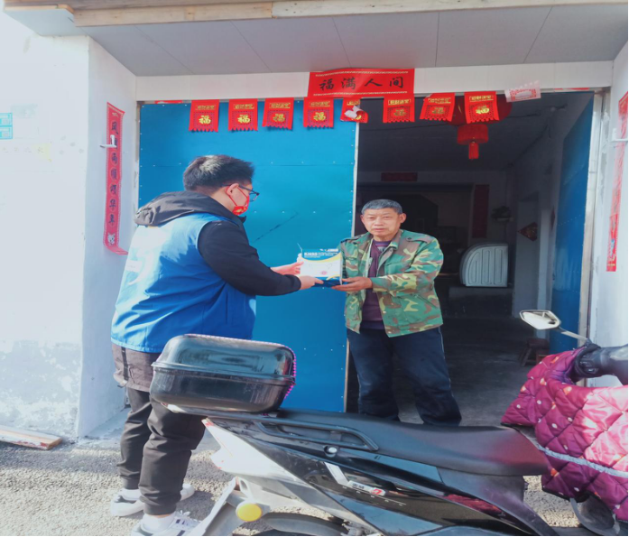 為切實做好疫情防控期間有關社會救助工作,保障困難群眾基本生活,2022年3月8日,南京市江寧區(qū)湖熟街道晶明村網(wǎng)格員劉斌深入轄區(qū)低保特戶和困戶家庭中,挨家挨戶為困難群眾免費發(fā)放口罩。