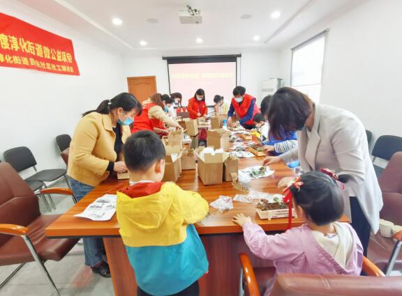 現(xiàn)場(chǎng),志愿者們還帶領(lǐng)孩子們進(jìn)行“植物大戰(zhàn)”,孩子們?cè)谥驹刚叩闹笇?dǎo)下,挑選適合花盆栽植的多肉,并進(jìn)行修理根、挑選土壤到澆水,志愿者老師詳細(xì)介紹栽種多肉植物的步驟,孩子們選好各自的花器后,跟隨志愿者的步驟一步一步完成多肉植物的栽培。在多肉種植環(huán)節(jié)中,孩子們還不忘在花器中插上一把小傘,為多肉植物遮風(fēng)擋雨。