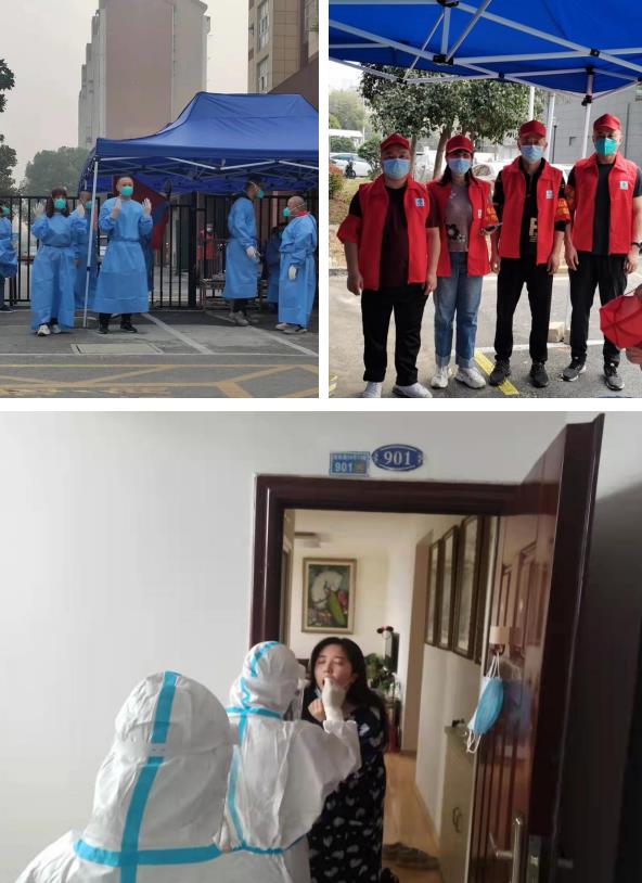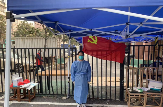疫情當(dāng)前,人心惶惶,全民核酸檢測刻不容緩,但醫(yī)護(hù)人員人手不足,居住在管控小區(qū)里面的居民立刻報(bào)名成為了志愿者,做一些力所能及的事情。他們分別是東山街道城管、淳化街道西城村網(wǎng)格員、江寧區(qū)人才集團(tuán)以及江寧公交集團(tuán)的黨員志愿者們。他們有些人穿上防護(hù)服,戴好手套和口罩,穿梭在核酸采樣點(diǎn),維護(hù)秩序,答疑解惑;還有一些挨家挨戶上門,為在家隔離的村民提供采樣檢測服務(wù),并為他們分發(fā)物資,安撫他們的情緒,鼓勵(lì)大家積極面對、樂觀向上。藍(lán)色的帳篷、白色的防護(hù)服、紅色的志愿者馬甲,和陽光下鮮艷奪目的黨旗……這些顏色是疫情當(dāng)前的“定心丸”,也是中國精神的閃耀。