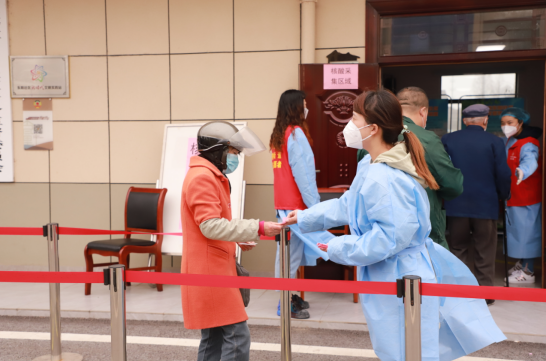 張施長(zhǎng)期駐點(diǎn)在東陽(yáng)社區(qū)居家養(yǎng)老服務(wù)站,平時(shí)為社區(qū)的老年人服務(wù),在去年和今年的疫情防控中,她積極主動(dòng)報(bào)名成為志愿者,為疫情防控風(fēng)險(xiǎn)自己的一份力量。在得知東陽(yáng)社區(qū)缺少志愿者時(shí),她主動(dòng)向主管申請(qǐng)能否多派人到該社區(qū),她的這一請(qǐng)求,得到了主管王慶榮的支持,王慶榮帶來(lái)了另外兩名服務(wù)人員,一起加入了東陽(yáng)社區(qū)志愿者隊(duì)伍。