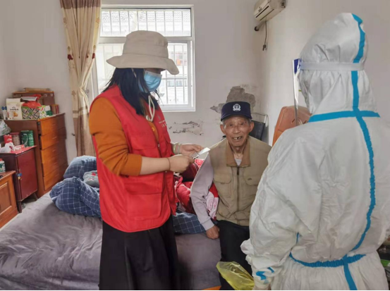 村書記張小祥,第一書記袁錚杰一早便來到核酸檢測現(xiàn)場開展工作,奔忙在核酸檢測現(xiàn)場第一線,囑咐村民群眾嚴(yán)格遵循核酸檢測規(guī)定,前后保持一米安全距離。其他志愿者們則拿著喇叭在村內(nèi)喊話,呼吁村民主動(dòng)進(jìn)行核酸檢測,為確保不漏一戶、不漏一人,醫(yī)護(hù)人員和志愿者還為村里老弱病殘等出行不方便的村民提供上門采集核酸服務(wù),他們來到行動(dòng)不便的村民家中,向他們傳達(dá)政府防疫工作,并提供核酸采樣服務(wù)。